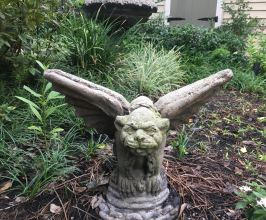 The revered patriarch was still absent the following day, and a veritable turf-war had begun in the garden. No longer in danger of being snared in the jaws of the master hunter, juvenile lizards scurried about freely, snapping at moths and each other. Several hipster and millennial males engaged in a bidding war for ownership of No-Tail’s prime sunning and hunting perch on the gargoyle’s left wing. A lonely female kept watch on the fence, longing for his return. As do I.